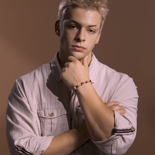 Des bracelets au style affirmé, conçus à la main en France en acier inoxydable doré ou argenté et pierres naturelles. Pensés pour durer, ils sont hypoallergéniques, résistants à l’eau et conformes à la réglementation REACH. Un design épuré, masculin, qui accompagne le quotidien avec caractère.